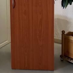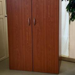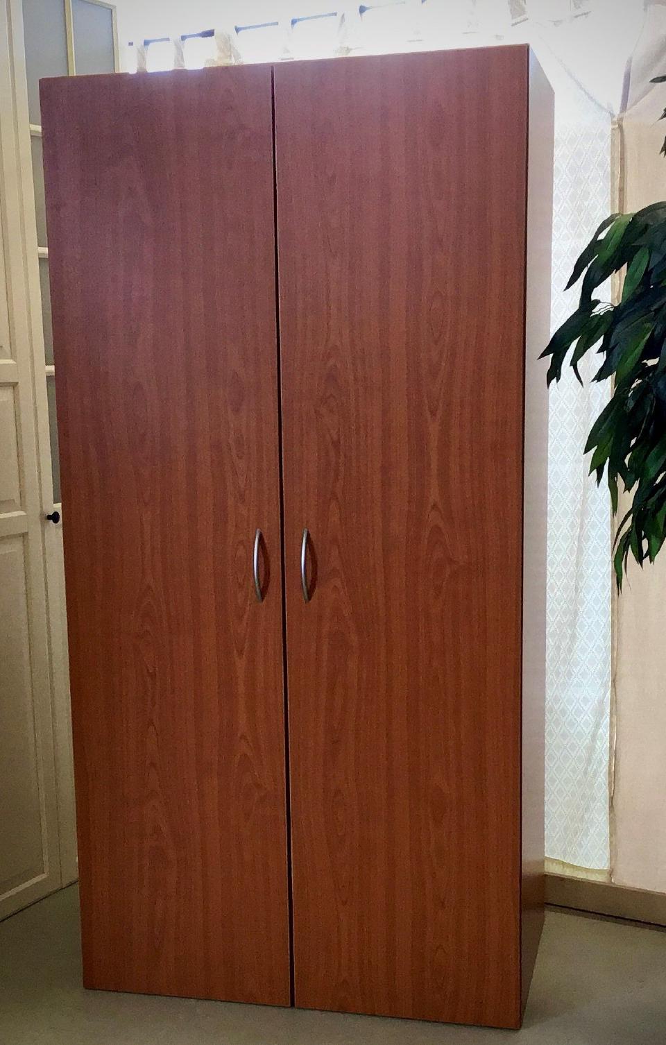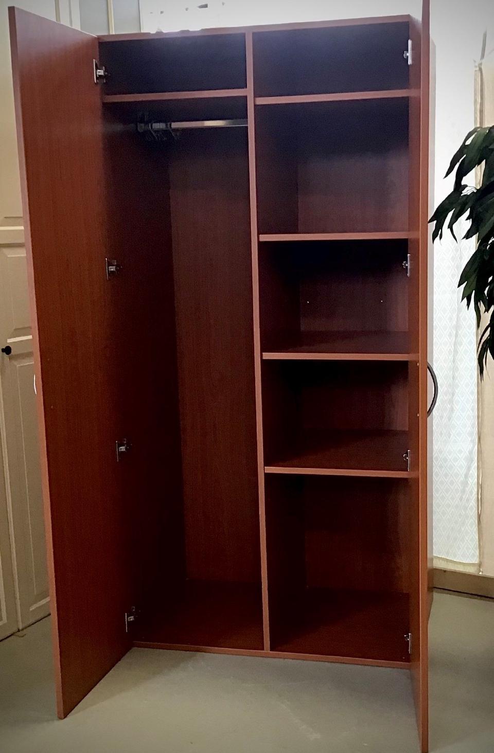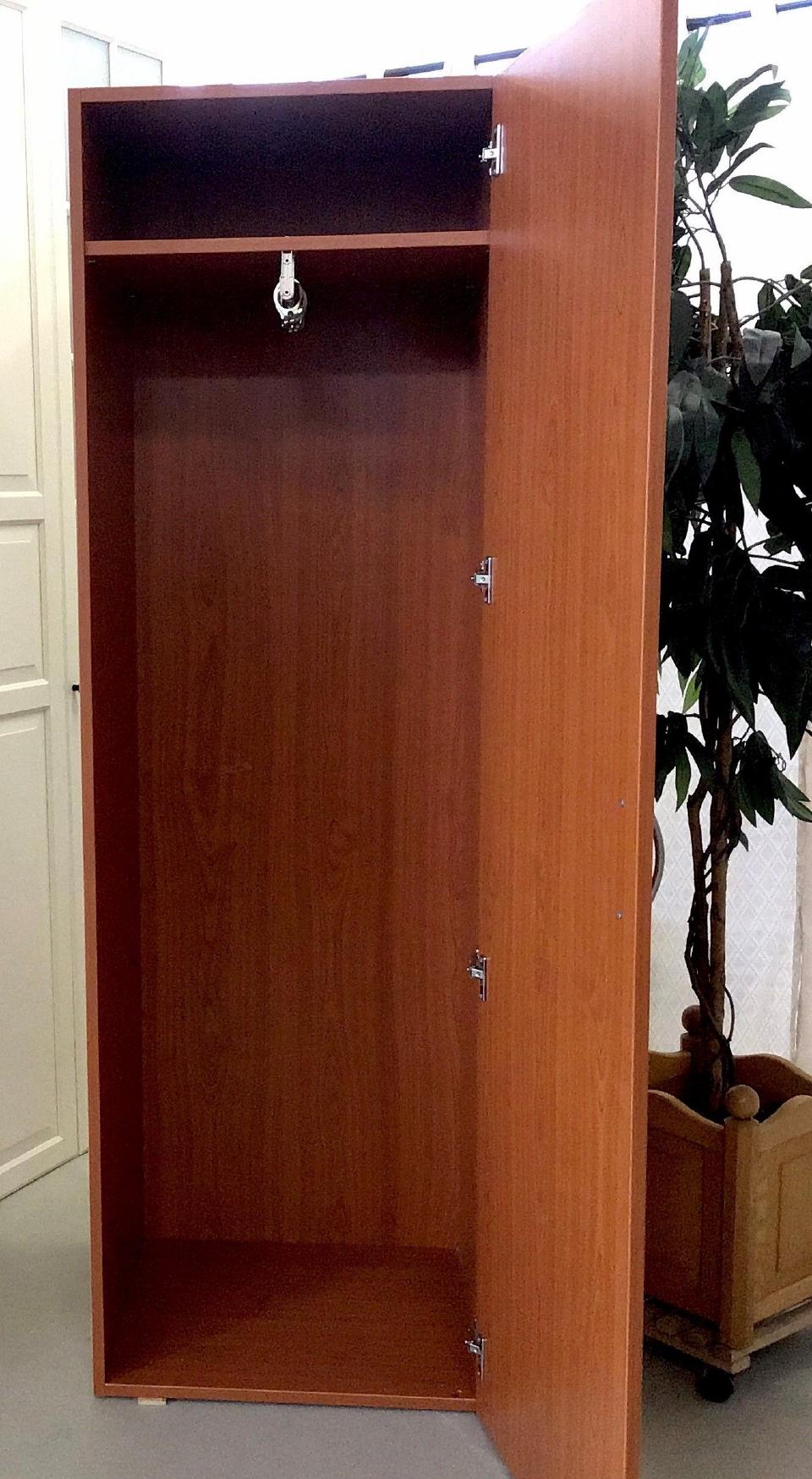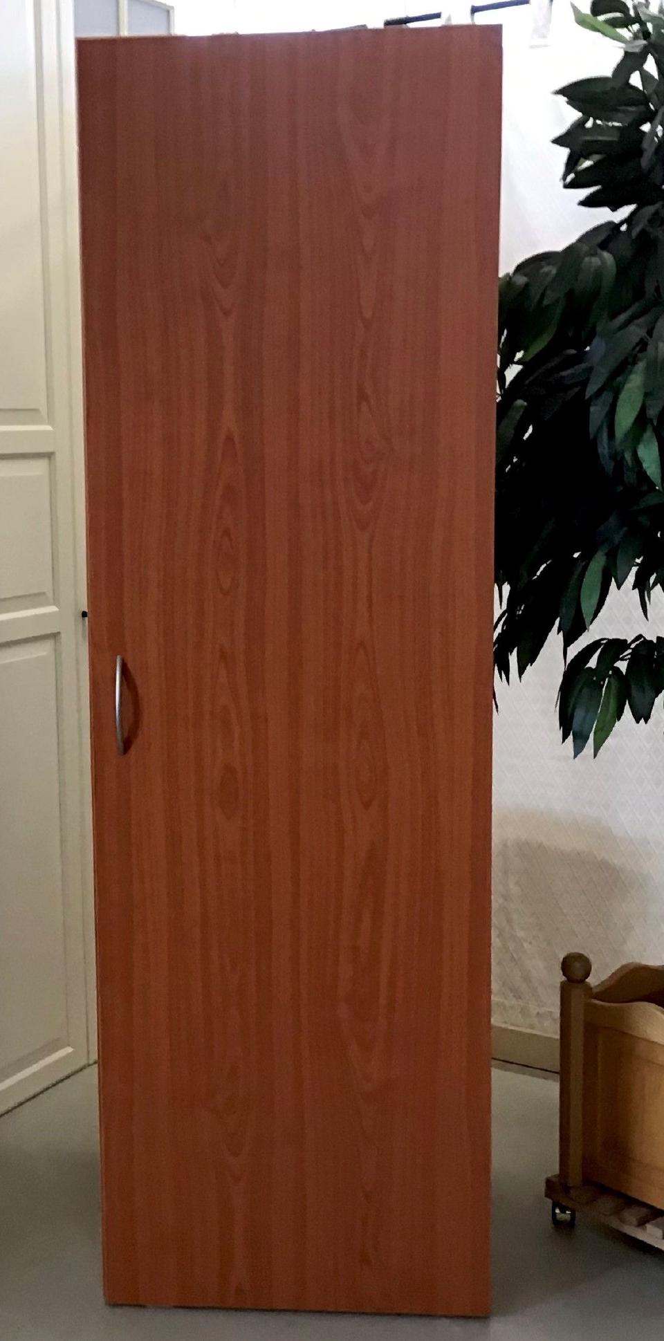 Der Kleiderschrank in Kirscheoptik hat 1 Tür , die Maße sind circa 50 cm x 190 cm x 50 cm