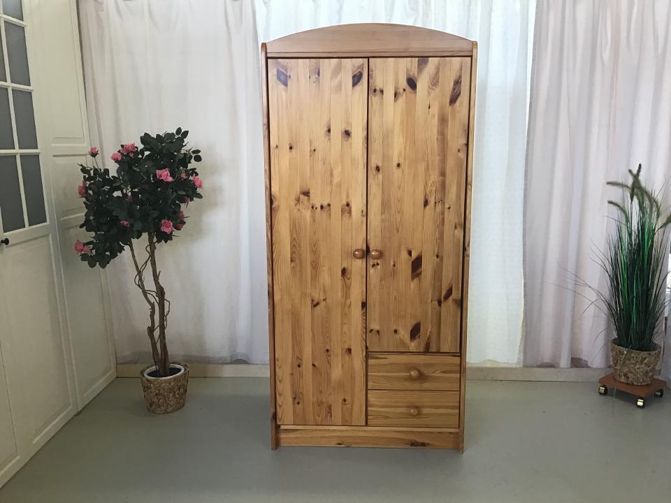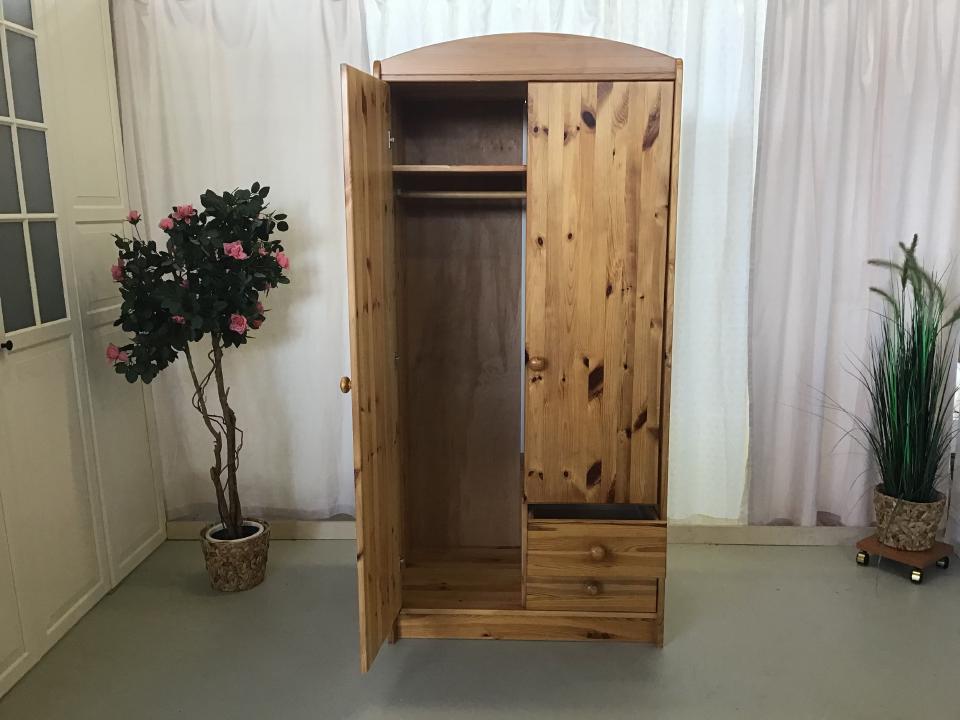 Der kleine Kleiderschrank aus lackierter Kiefer natur hat die Maße 86 cm x 183 cm x 53 cm